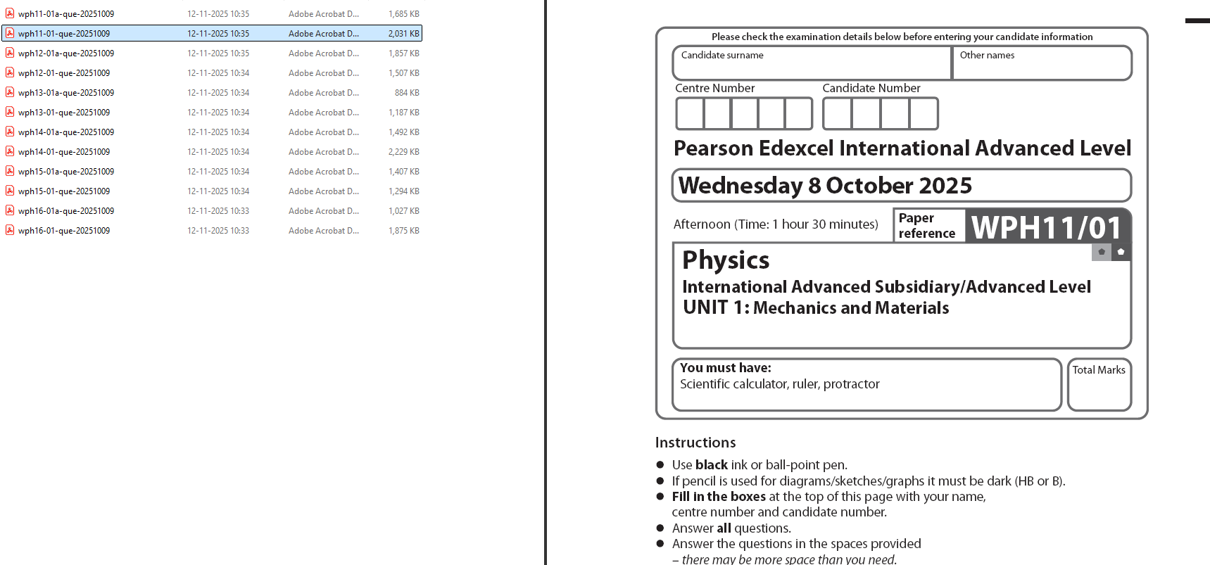 EDEXCEL IAL PHYSICS 2025 OCTOBER QUESTION PAPERS WITH MARKING SCHEME