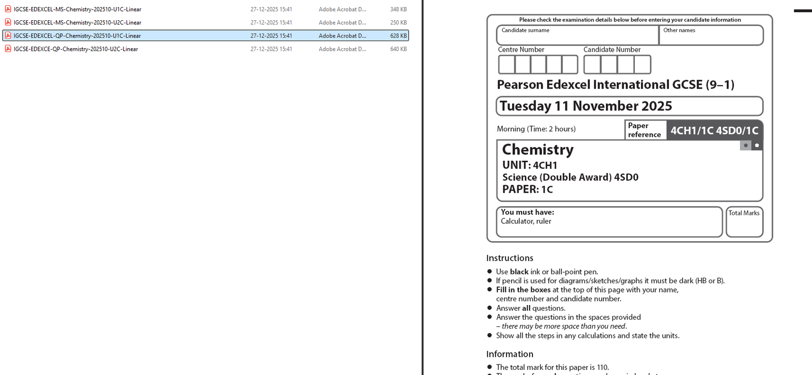 EDEXCEL IGCSE CHEMISTRY 2025 NOVEMBER QUESTION PAPERS WITH MARKING SCHEME
