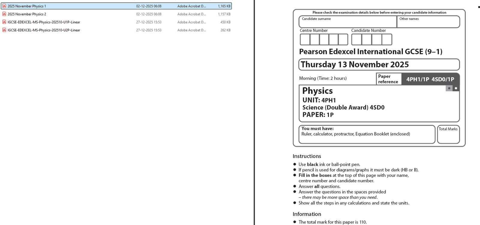 EDEXCEL IGCSE PHYSICS 2025 NOVEMBER QUESTION PAPERS WITH MARKING SCHEME